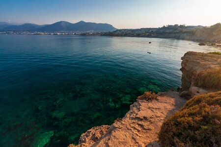 Panorama with sea view on Daskalio gulf in Keratea in Athens in Greece