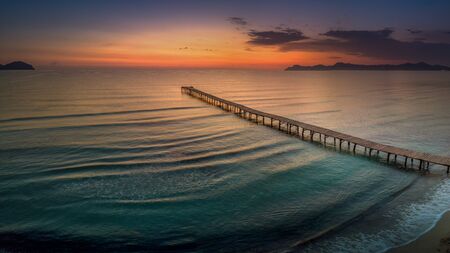 Wooden pier on the east coast of Mallorca at sunrise