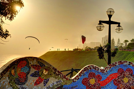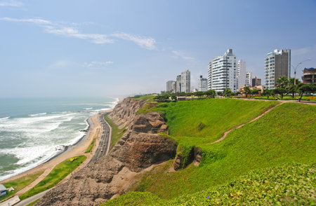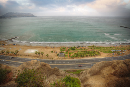 Lima, Peru - May 27, 2016: Beautiful view of Lima coastline from Miraflores district. South America