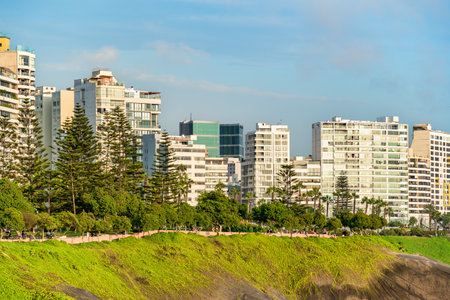 Lima, Peru - October 2021: View of the Miraflores district in Lima, Peru