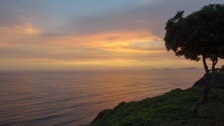 Beautiful sunset landscape in the coast of Lima Peru, Miraflores Distric.