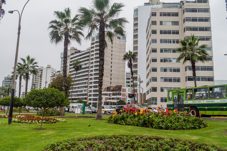 LIMA, PERU - JUNE 4, 2015: High apartment buildings in Miraflores district of Lima, Peru.