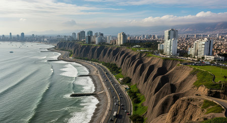 The Pacific Ocean warms the shores of Lima, the capital of Peru. Beautiful urban nature in latin America.
