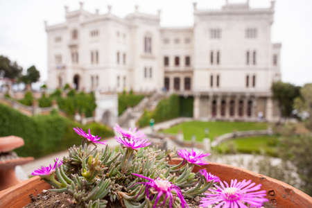 Trieste, Italy - October 13, 2019: Fragment of the castle of Miramare (Italian: Castello di Miramare) of the XIX century, which is located in the north-east of Italy.