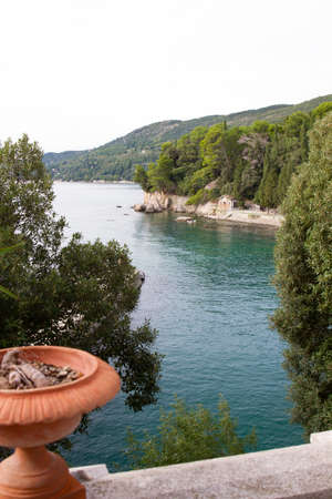 Stone path along the shore in Opatija, Croatia, Europe. No people. Holiday travel destinations around Europe.