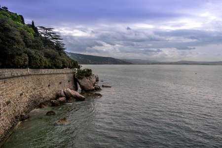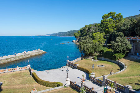 TRIESTE, ITALY - AUGUST 11, 2017. Miramare castle park and embankment