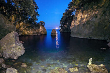 Hidden secret beach Maramozza at night, Lerici, Cinque Terre, Liguria, La Spezia, Italy
