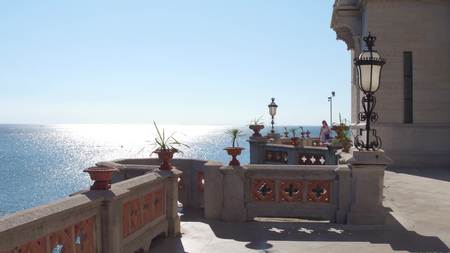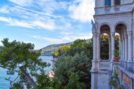 Romantic Balcony of Castle Miramare on the coast of Adriatic Sea, Italy