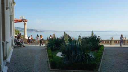 Miramare, TS, Italy - June 3, 2017: Miramare Caslte was built in 19th-century on the Gulf of Adriatic sea near Trieste City in northeastern Italy