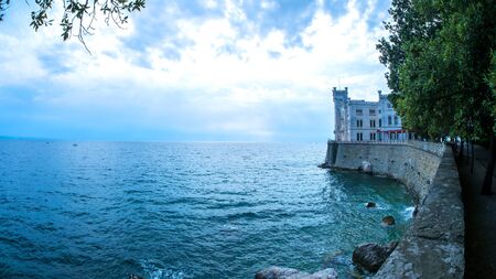 The sea side of Miramare Castle in Trieste, Italy