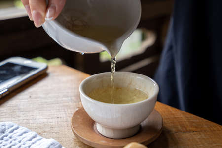 Elegant and Delicate Tea Pouring in a Beautiful Traditional Chinese Cup for Enjoyment