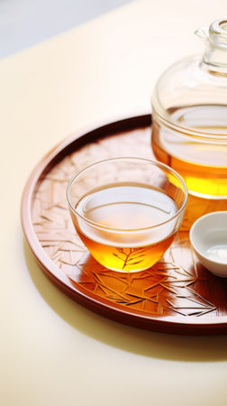 Elegant tea glass with cups set against a dark background for a beautiful display