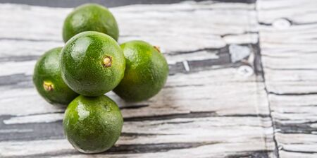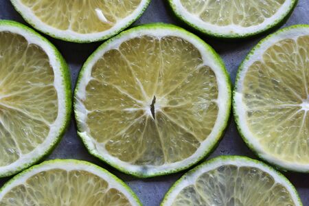 lime slices on wooden table. Detox diet, limes Backgrounds, Close up shot, fruit macro photography