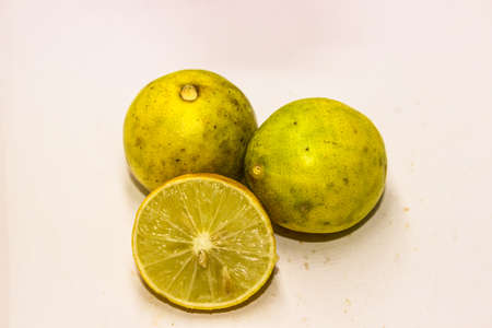 Green limes on the lime tree (Citrus aurantifolia), they are closely related to lemon. It has a sour taste and is an excellent source of vitamin C.