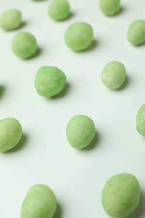 Orange lentils nicely laid out on a white background. Top view. Vegetarian food. Greenish background