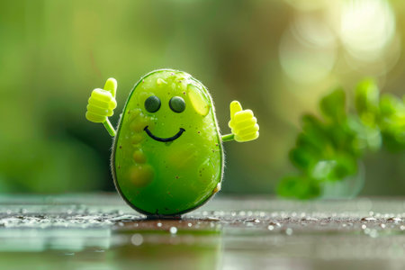 Two cheerful fruit faces carved from green fruit sit among leaves, radiating joy and playfulness. This whimsical image captures happiness and creativity in nature.