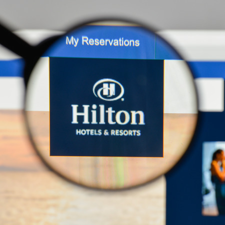 Milan, Italy - August 10, 2017: Hilton logo on the website homepage.