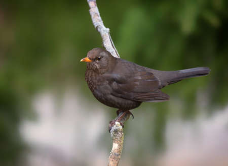 Common blackbird Turdus merula in the wild. Close up songbird.