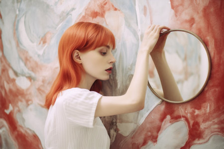 cropped shot of an attractive young woman looking at an inverted image in a mirror, created with generative ai