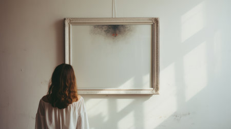the woman stands introspectively in front of the mirror, lost in thought as she engages in self-reflection, contemplating her life choices, personal growth, and emotional well-being, surrounded by a serene atmosphere that fosters mindfulness and self-awareness. ai generated