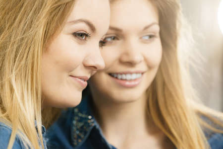 Friendship, human relations concept. Two happy women friends having fun smiling with joy