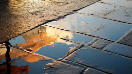 reflections of the sky in puddle after a rain storm, created with generative ai