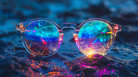 Clear Glasses Reflecting Vibrant Lights