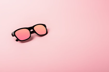 Black sunglasses with Multicolor Mirror Lens on pink background. Polarized sunglasses with UV protection.