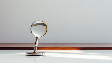 Circular makeup mirror with a sophisticated, slim frame, isolated on a soft, neutral backdrop to enhance its elegance