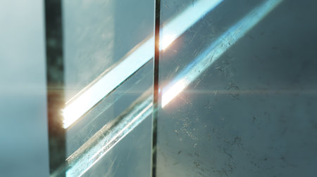 Glass, mirror reflection shapes and shadows. Close-up details.