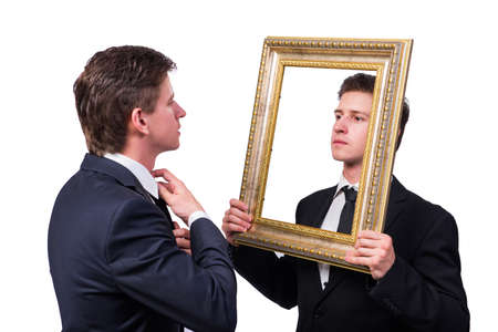 Man kissing himself in the mirror, arcissistic personality disorder concept