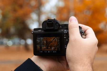 Capturing Autumn Scene Through Digital Camera Viewfinder