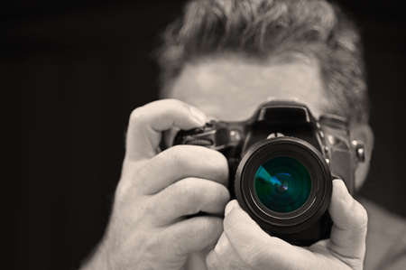 Man photographing with a camera. close-up