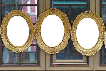 Empty space oval gold portrait picture frames