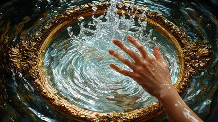 An opulent gold mirror reflects a stunning antique painting, a glittering crystal chandelier, and the elegant details of a luxurious interior. This image showcases a baroque design with ornate gold detailing, perfect for illustrating concepts of luxury, history, and refined taste. The reflection provides a unique perspective on the room's classic decor, ideal for interior design projects, articles on historic architecture, or marketing materials for high-end brands. The image evokes feelings of wealth and vintage charm.