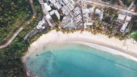 Amazing beach Aerial view of Tropical beach sea in the beautiful Phuket island Located at Freedom beach Phuket Thailand.