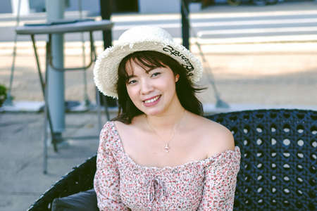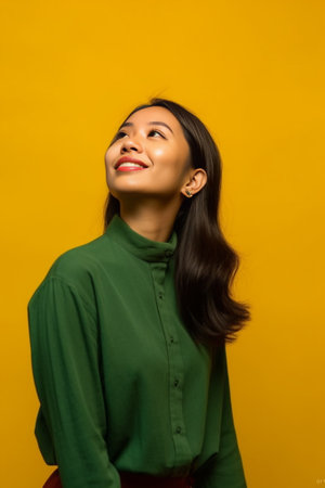 Woman Portrait Beautiful Teenager Young asian Woman isolated on blue background