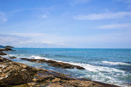 Beautiful blue sky and green and natural scenery of the sea in Kitanagato Coast Quasi-National Park