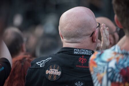 SIBIU, ROMANIA - JULY 26, 2019: Rocker fans enjoying a Wardruna live concert at Artmania Rock Festival
