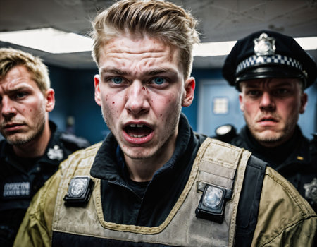 photo group of rage angry teenage college boy fighting the other with wound on face, generative AI