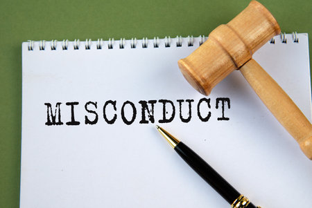 MISCONDUCT - word on a white sheet with a judge's gavel