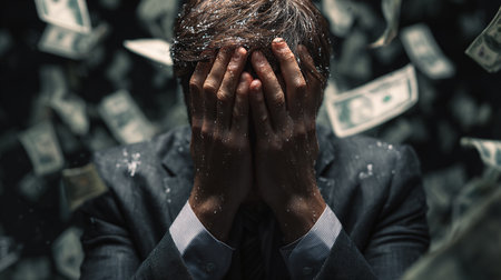 a man with his hands tied holding dollars, dependence on money, repayments, credit arrears