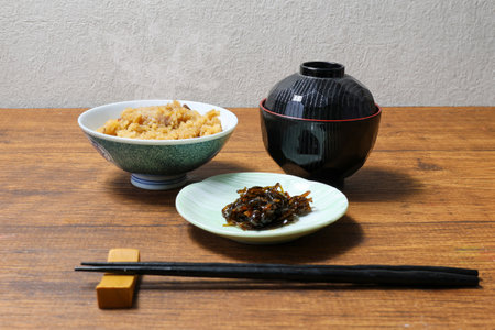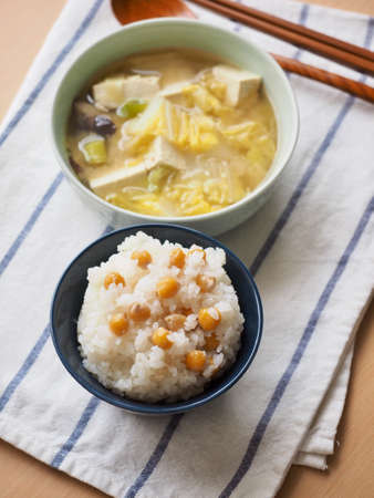 Asian food White rice and Cicer arietinum, Miso Soup