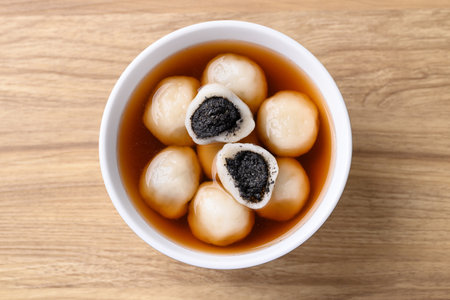 Tangyuan (Chinese sweet dumpling), Glutinous rice flour filling with black sesame in ginger syrup