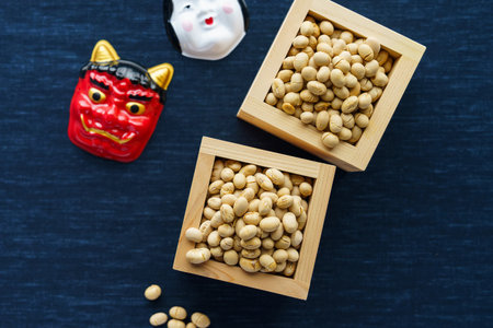 Japanese traditional event Setsubun. Scatter parched beans to drive out bad luck and call in good luck (on the last day of winter according to the lunar calendar)