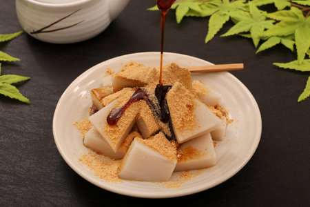 Traditional japanese mochi with bean dessert ,Japanese confectionery Warabi-mochi