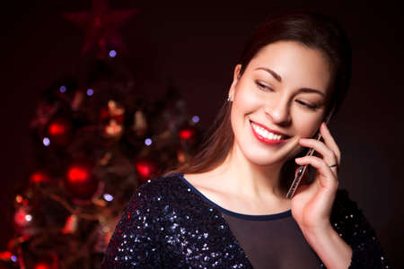 Attractive brunette making a call from home