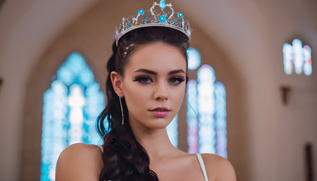 Close-up portrait of a beautiful young woman in a crown.