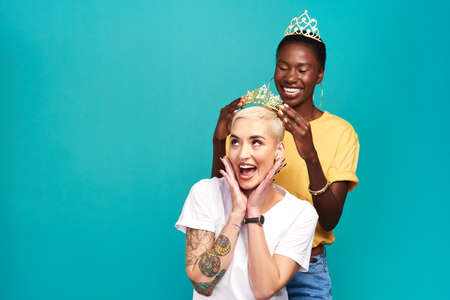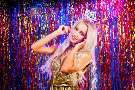Beautiful young smiling woman posing with a crown on her head