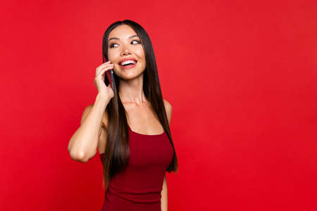 Beautiful asian woman in black dress on white background, model is a asian beauty